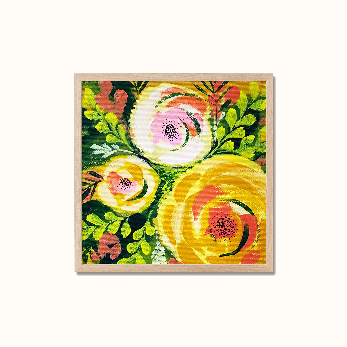 Størrelse: 15×15 cm. Miniprint – Gule roser – Kunstplakat er Printet på kvalitetspapir. Ramme er ikke inkludert.
