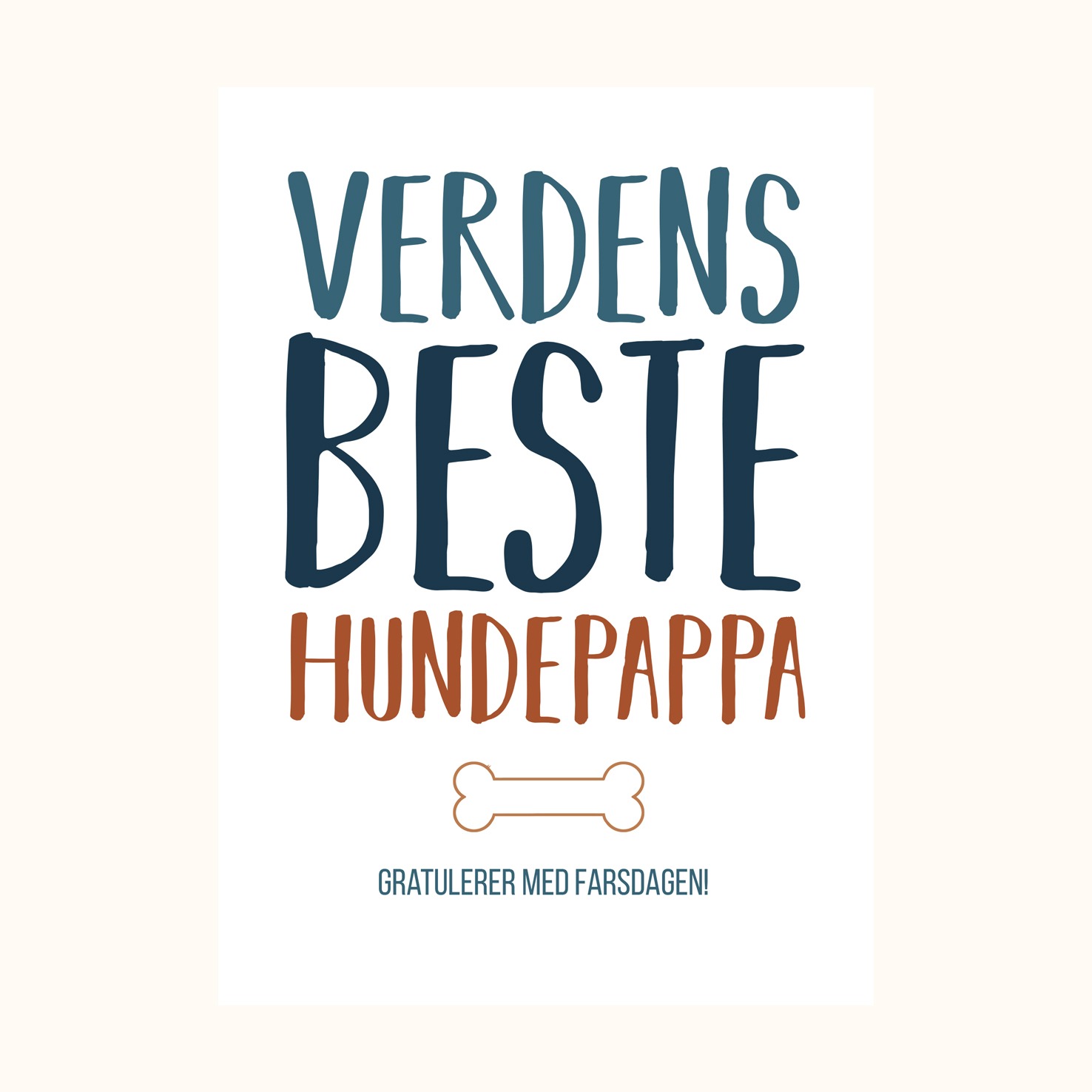 Farsdags kort Hundepappa. Et koselig farsdagskort til alle hundepappaer der ute, med teksten: Verdens beste hundepappa! Gratulerer med farsdagen!. Størrelse: A6. Konvolutt følger med. Kortet inngår i en serie med morsomme og koselige farsdagskort. Farsdags kort Hundepappa trykkes på kvalitetspapir.