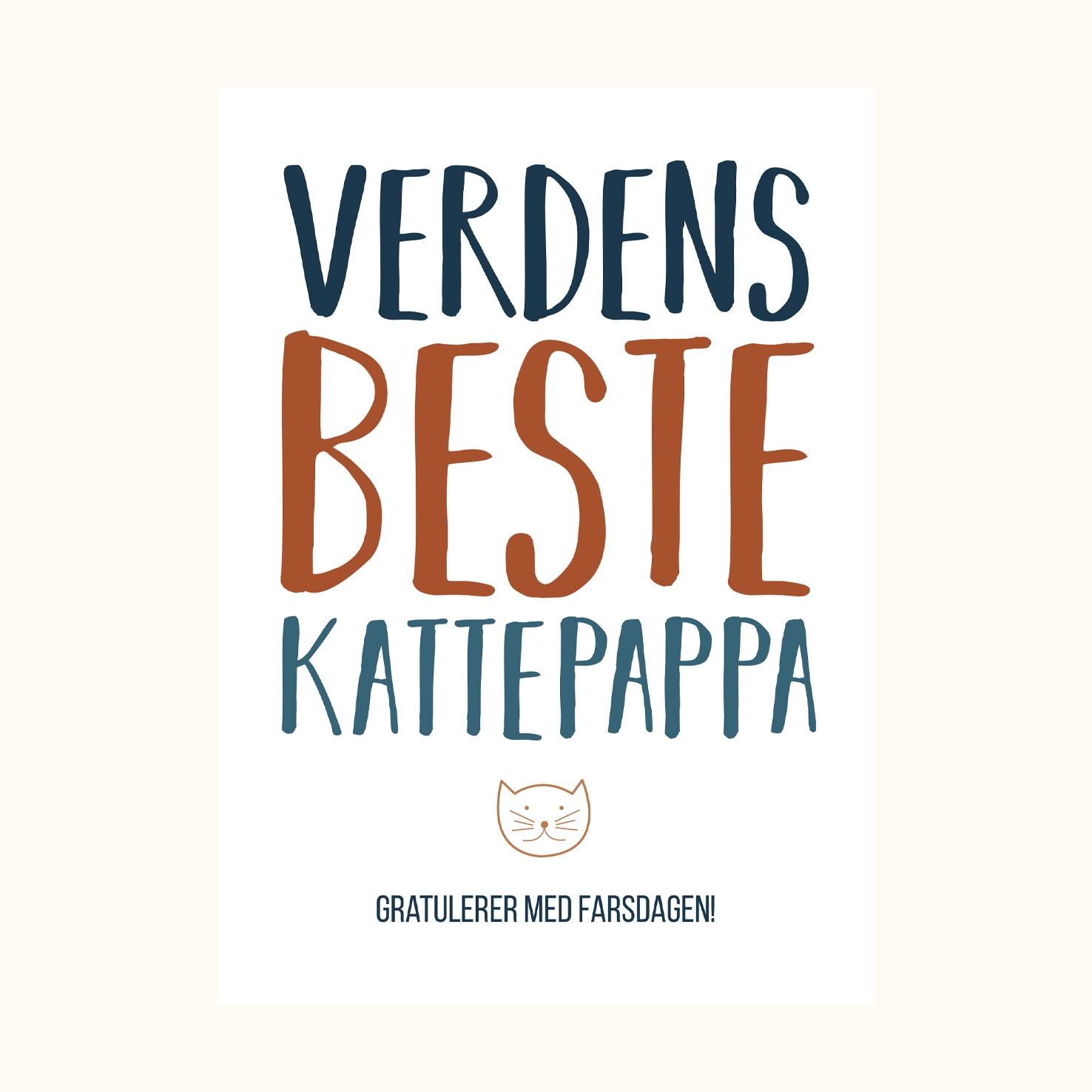 Farsdags kort Kattepappa. Et koselig farsdagskort til alle kattepappaer der ute, med teksten: Verdens beste kattepappa! Gratulerer med farsdagen!. Størrelse: A6. Konvolutt følger med. Kortet inngår i en serie med morsomme og koselige farsdagskort. Farsdags kort Kattepappa trykkes på kvalitetspapir.