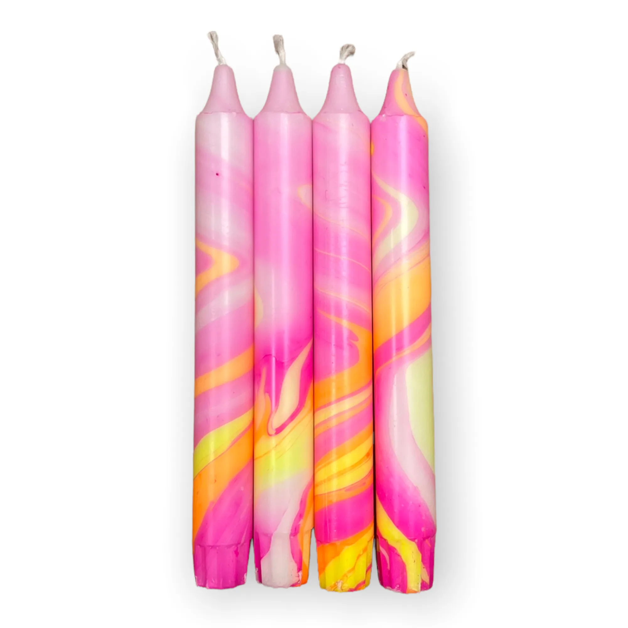 Disse håndlagde, melerte kronelysene i rosa og gult gir et fargerikt og lekent preg i hjemmet ditt. Hvert lys er dekorert for hånd, noe som gjør at ingen blir helt like. Den unike fargestrukturen gir et vakkert spill, enten du tenner dem ved middagsbordet, setter dem i vinduskarmen eller gir dem bort som en liten oppmerksomhet.