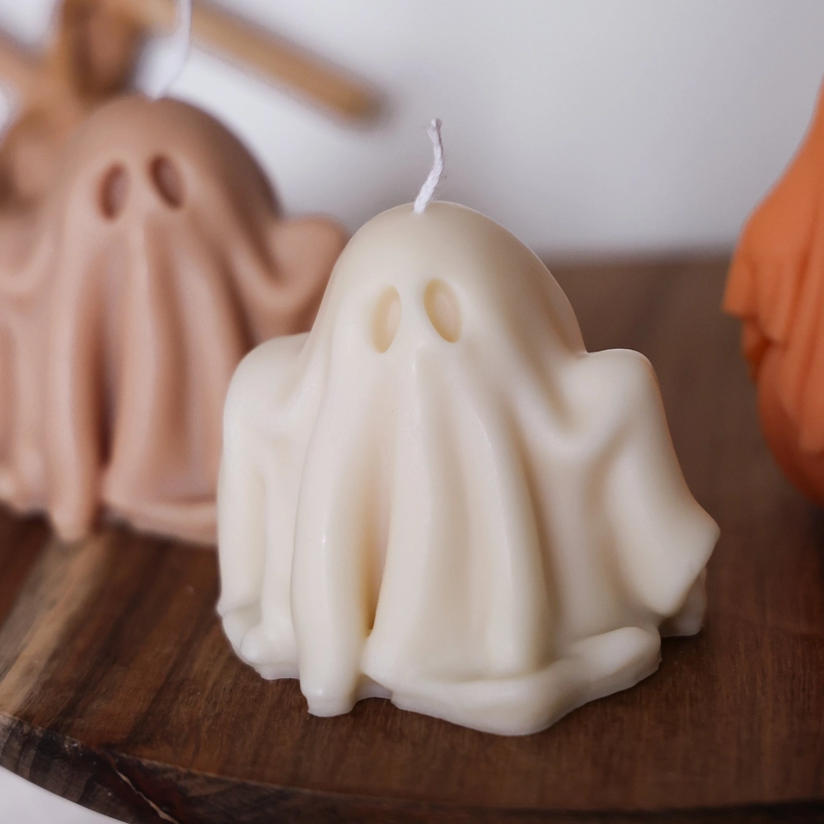 Dette håndlagde spøkelseslyset har et lekent og kolelig design. Lyset er laget av ren rapsvoks veken er laget av bomull. Dette gjør lyset til et miljøvennlig, vegansk, biologisk nedbrytbart lys, perfekt som dekorasjon til halloween og høsten. Dette spøkelset er av den søte sorten, og man kan ikke annet enn å elske det! Finnes i fire ulike farger: Rosa, orange, natur og beige.